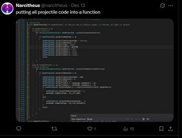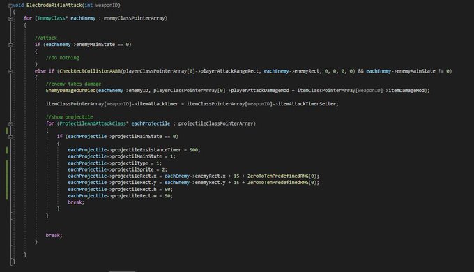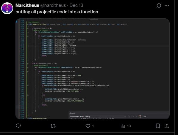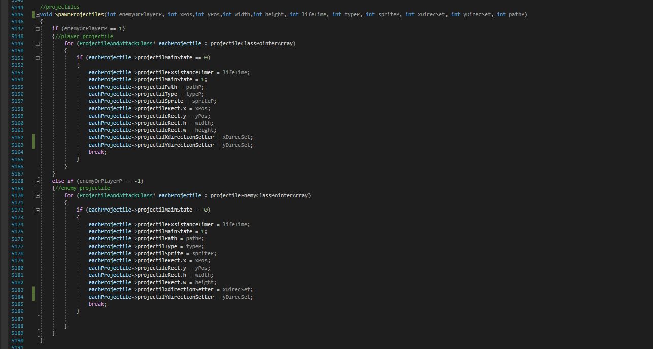This week's progress was middling and I got a little bit sidetracked first because of my new UI system not being finished and second because I had to clean up the code for my projectiles before moving forward. The UI issue is being caused because all my UI is in a array (basically a little storage box) and I take UI out automatically, but if I try taking out more than I put in at the start the program crashes. The projectile issue is that I have been repeating code for whenever something should be shooting a bullet and the time has come to pack it into a function before moving forward. I also fixed a few small bugs like always...